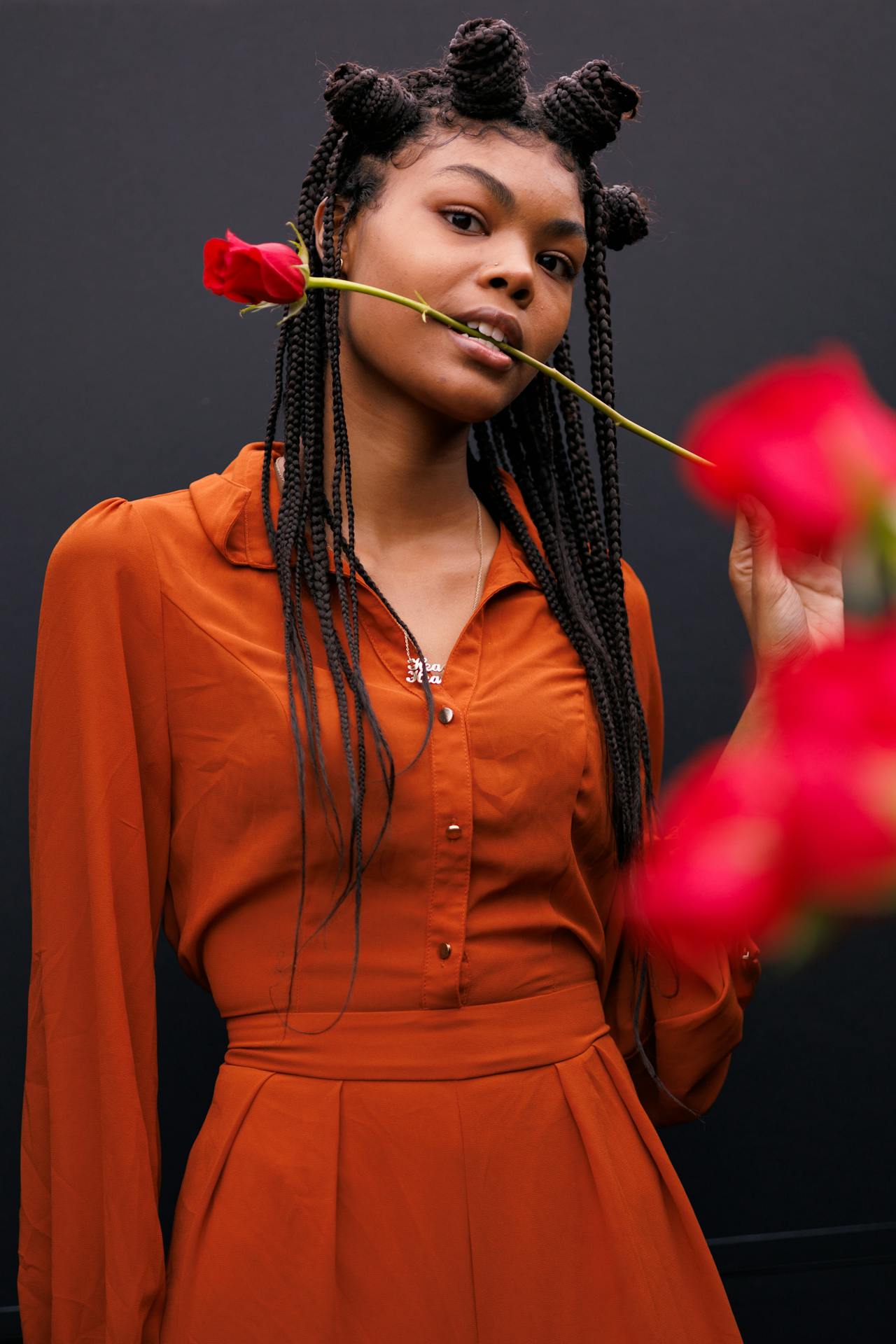 Pull the braids across the top of your head and secure them behind your opposite ear with bobby pins.